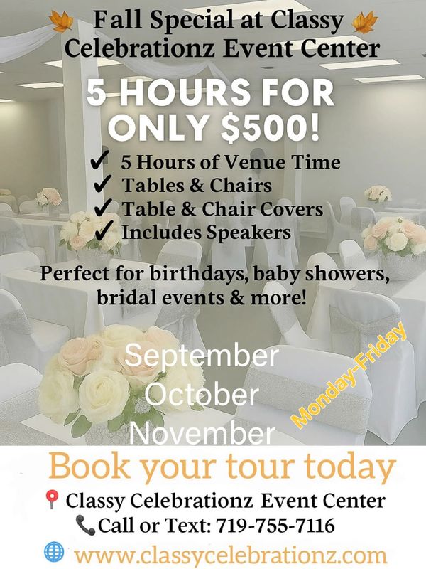 Host unforgettable Celebrationz at our Event Center or book our Event Rentals Tables & chairs, and we deliver straight to you
